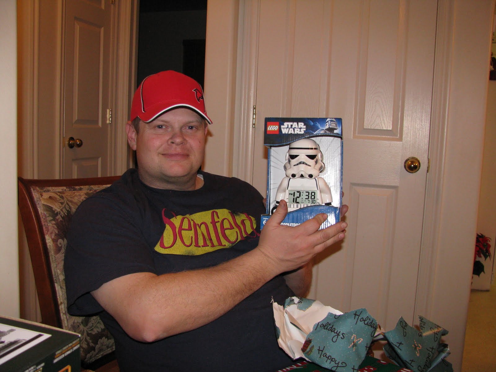 Opening gifts from grandpa and grandma before we left.. Tie pins
